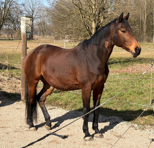 Durch eine verheilte Verletzung nicht reitbar. Bevorzugt in Offenstallhaltung da sie die letzen Jahre so gehalten wurde.